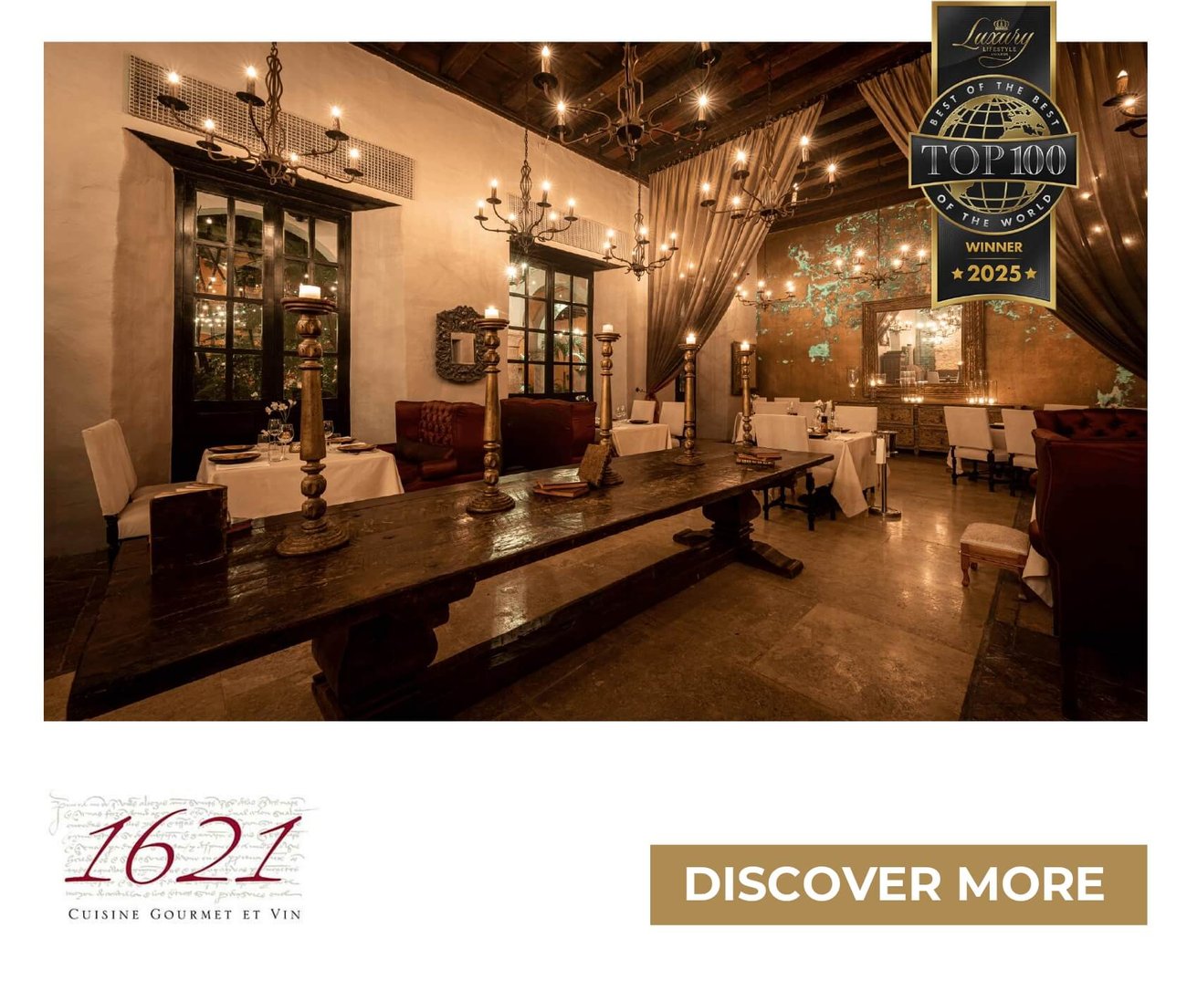Restaurant 1621 (Sofitel Legend Santa Clara Cartagena) | Named after the year the convent was founded, Restaurant 1621 has become a sanctuary for haute cuisine, weaving together French precision and Colombian soul in a setting as romantic as it is historic. Whether it is a romantic escape or a gathering of friends, Restaurant 1621 offers more than a meal—it offers a memory.