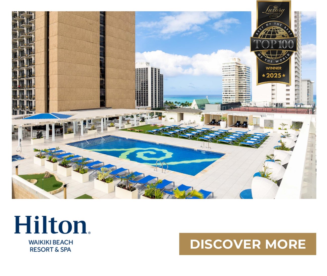 Just steps from iconic Waikiki Beach and vibrant Kalakaua Avenue, this TOP 100 winner offers a serene escape where peaceful luxury meets the spirit of Hawaii.