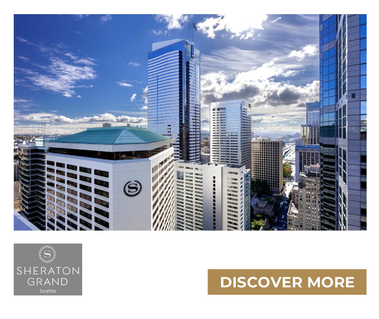 Sheraton Grand Seattle | Rising 35 stories above the heart of downtown Seattle, Sheraton Grand Seattle stands as a landmark of contemporary grace and exceptional service. With 1,236 rooms and suites that offer sweeping views of the city skyline, the hotel provides an inspiring setting for both business and leisure travelers.