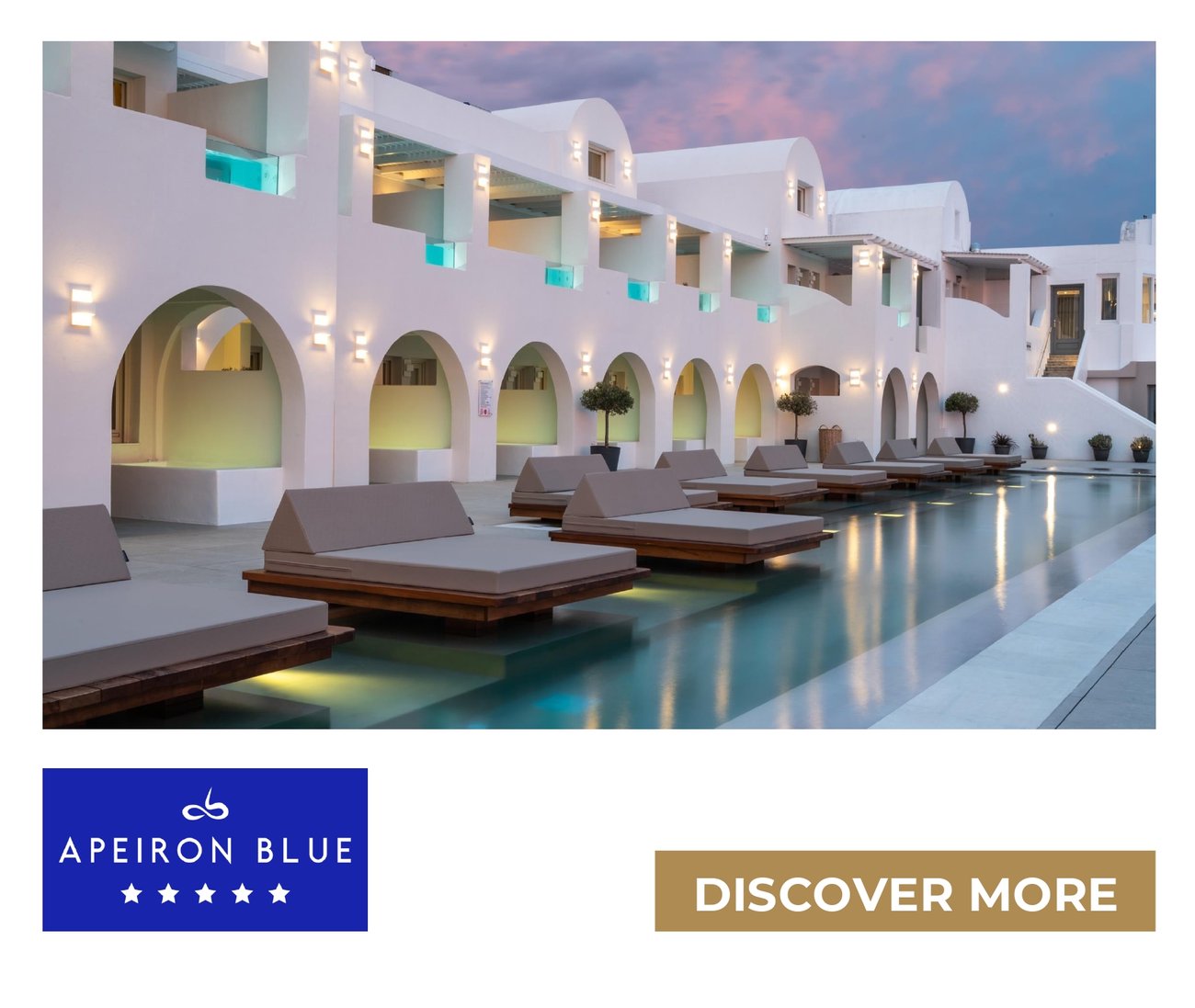 Apeiron Blue Santorini | Perched on the caldera rim, Apeiron Blue offers guests a deeper connection to the authentic soul of Santorini. Enjoy farm-to-table dining and embrace sustainable practices that invite guests to reconnect in the heart of Greece.