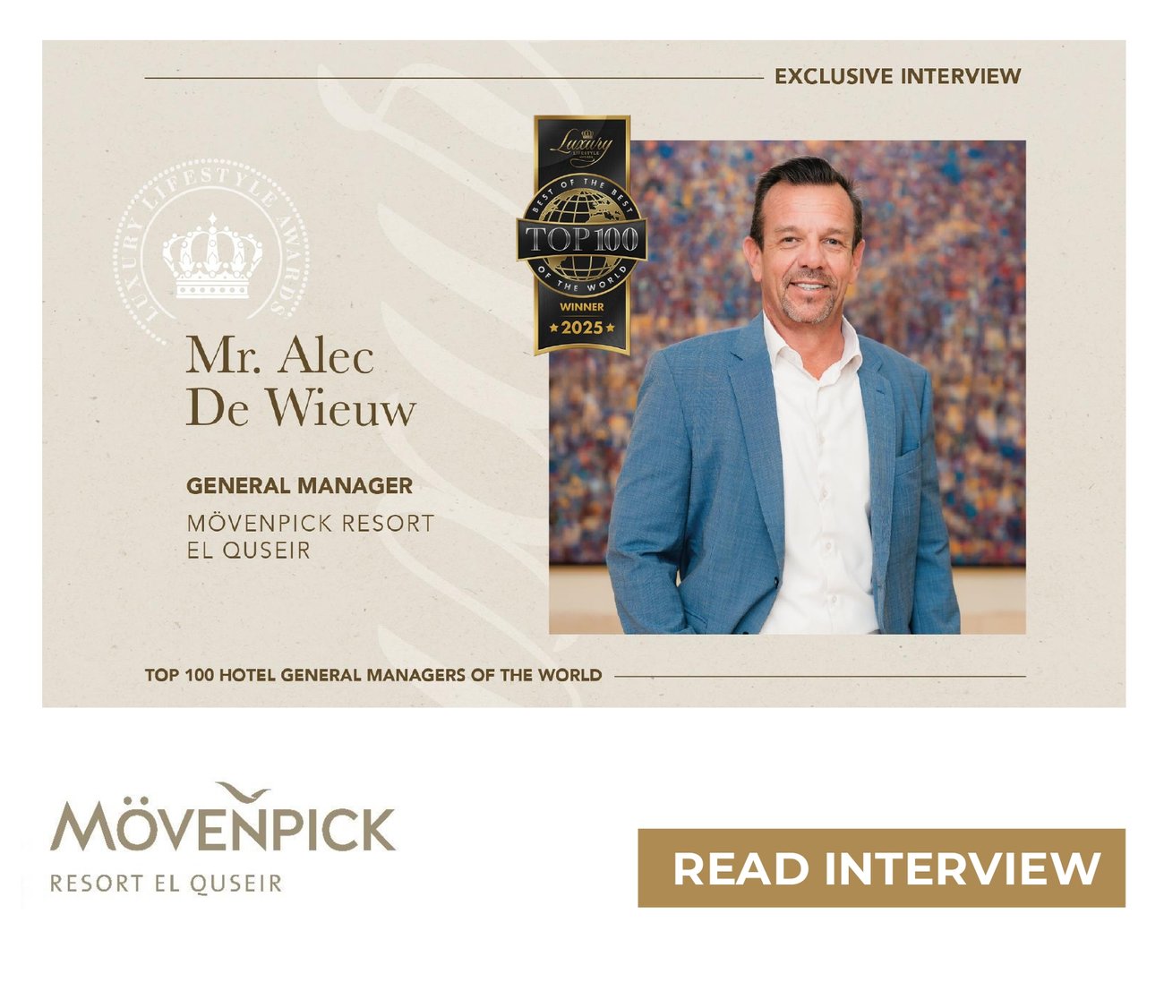 In an exclusive interview, Alec shares his vision for Mövenpick Resort El Quseir, and how innovations like Geb’s Garden and 50% energy cuts by 2026 redefine responsible Red Sea hospitality.