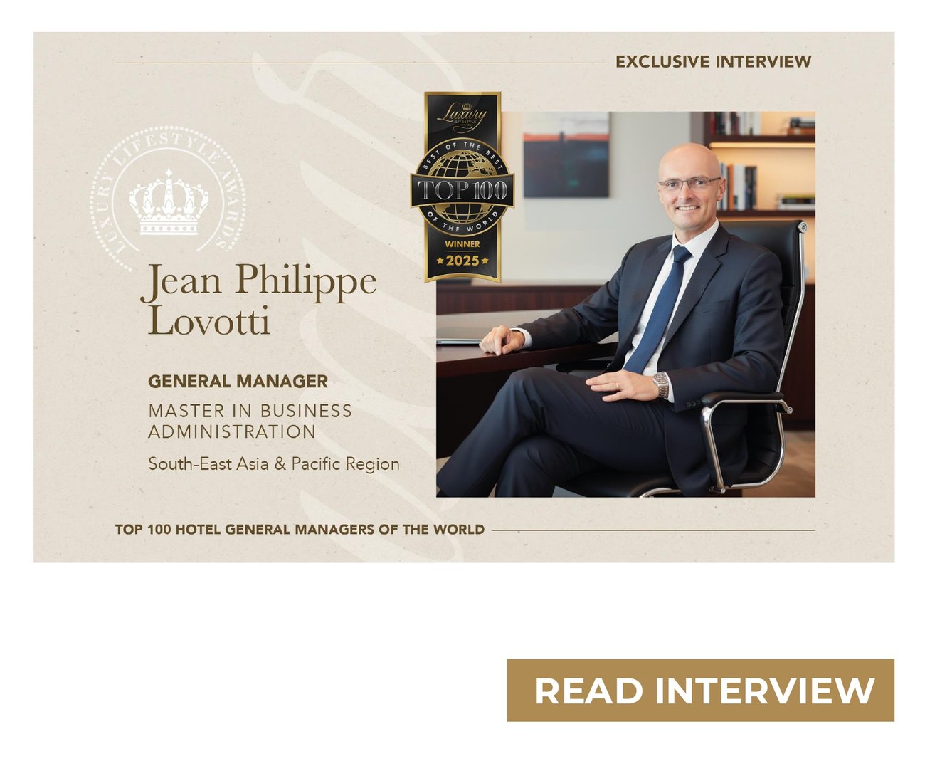 Luxury Lifestyle Awards proudly unveils the selection of the world’s most exceptional hotel general managers, whose visionary leadership and meticulous attention to detail are redefining luxury hospitality for discerning global travellers.